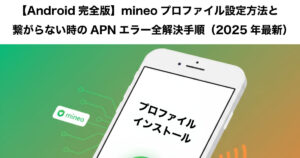 →より詳しく知りたいあなたは「【解決済み】mineoプロファイルがインストールできない!原因別の全エラーと対処法(iPhone/Android/eSIM対応)」の記事をチェックしてください。